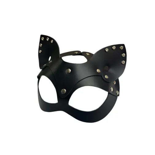 Игривая маска кошки, выполненная из натуральной кожи черного цвета, удобно фиксируется с помощью пряжки, легко регулируется по размеру. Ушки маски декорированы сияющими стразами, что придает аксессуару особый шарм. Маска прекрасно держит форму благодаря плотной качественной коже. Идеально подходит под любую форму головы, подчёркивая глаза. Эта маска поможет Вам создать яркий, игривый образ страстной кошечки.