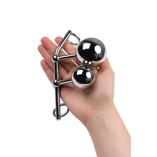СТРИНГИ С ДВУМЯ ШАРАМИ, TOYFA METAL, СЕРЕБРИСТЫЕ