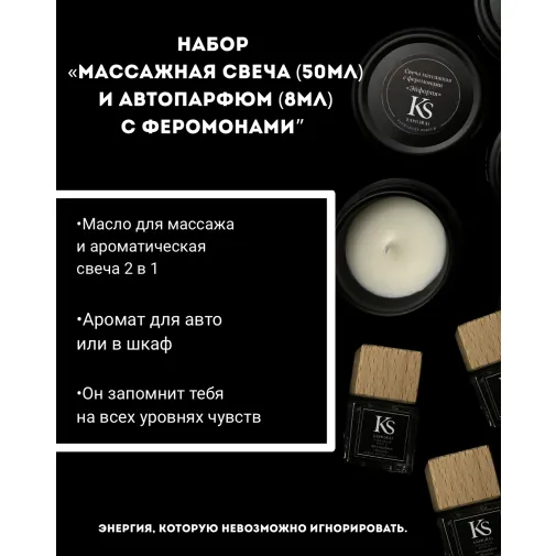 Набор «Массажная свеча и автопарфюм» с феромонами.